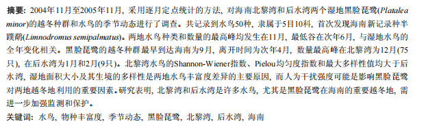 海南北黎湾和后水湾湿地水鸟的季节动态、物种丰富度和种间相关性
