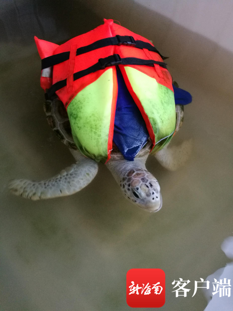 ‘Snow White’ the sea turtle recuperates in a lifejacket after an operation.
